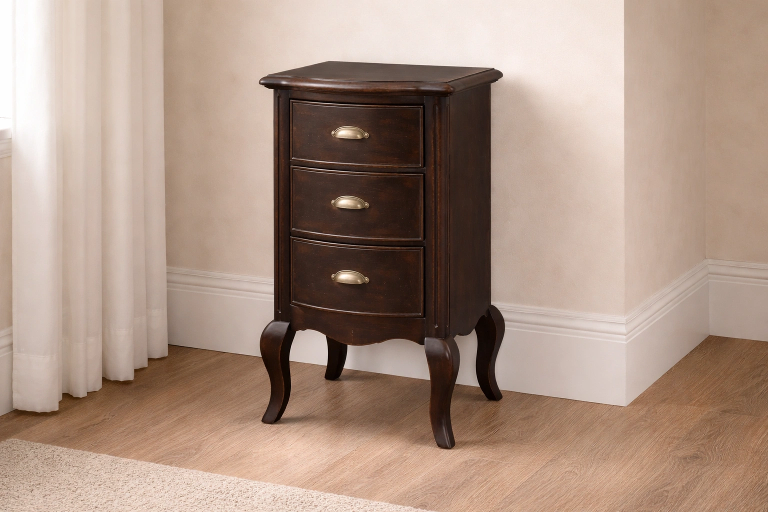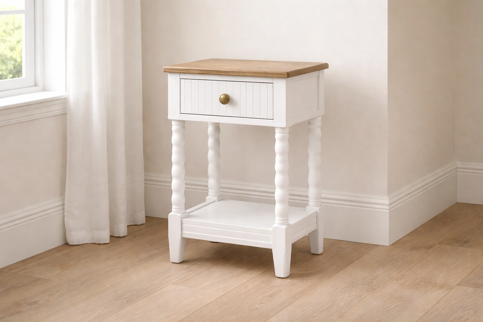 Table de chevet en bois blanc avec trois tiroirs