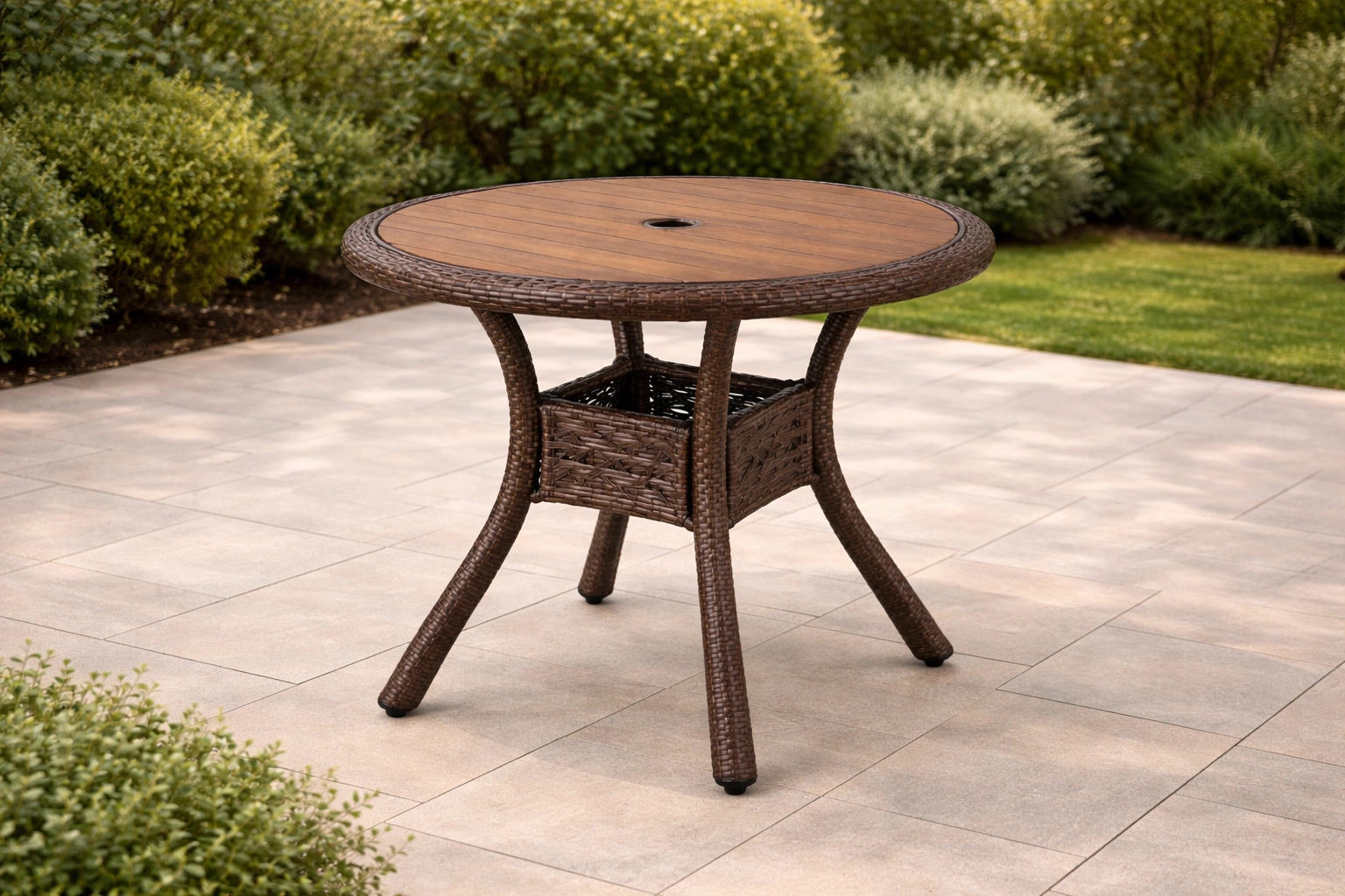Table de jardin en bois composite et résine tressée