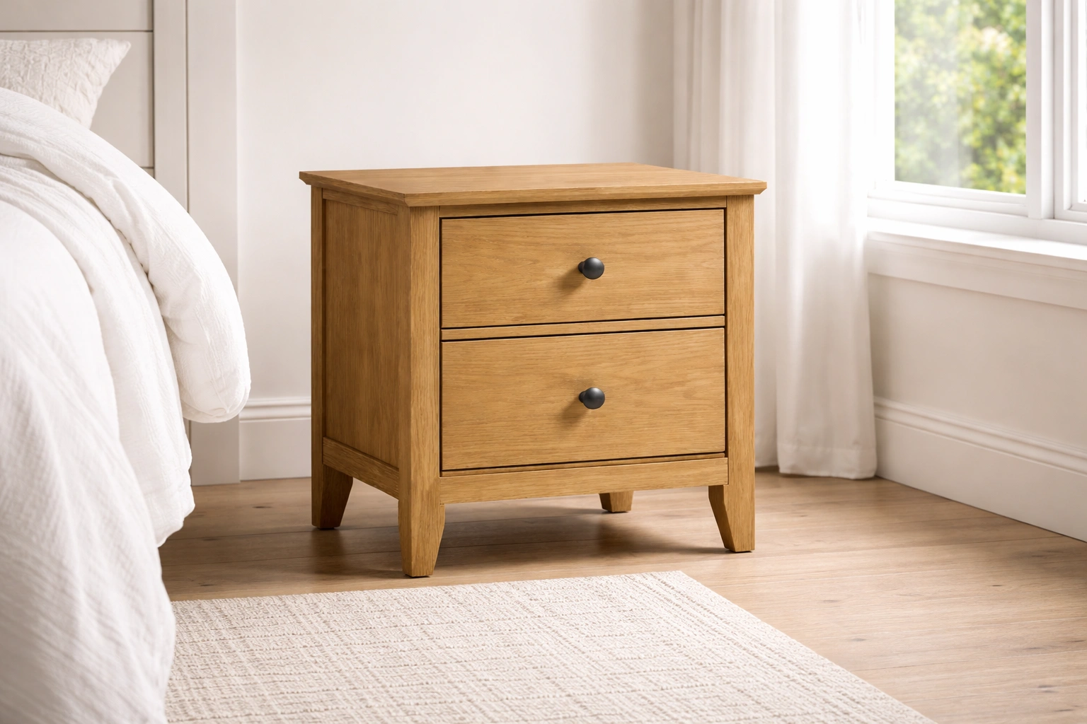 Table de chevet en bois avec deux tiroirs