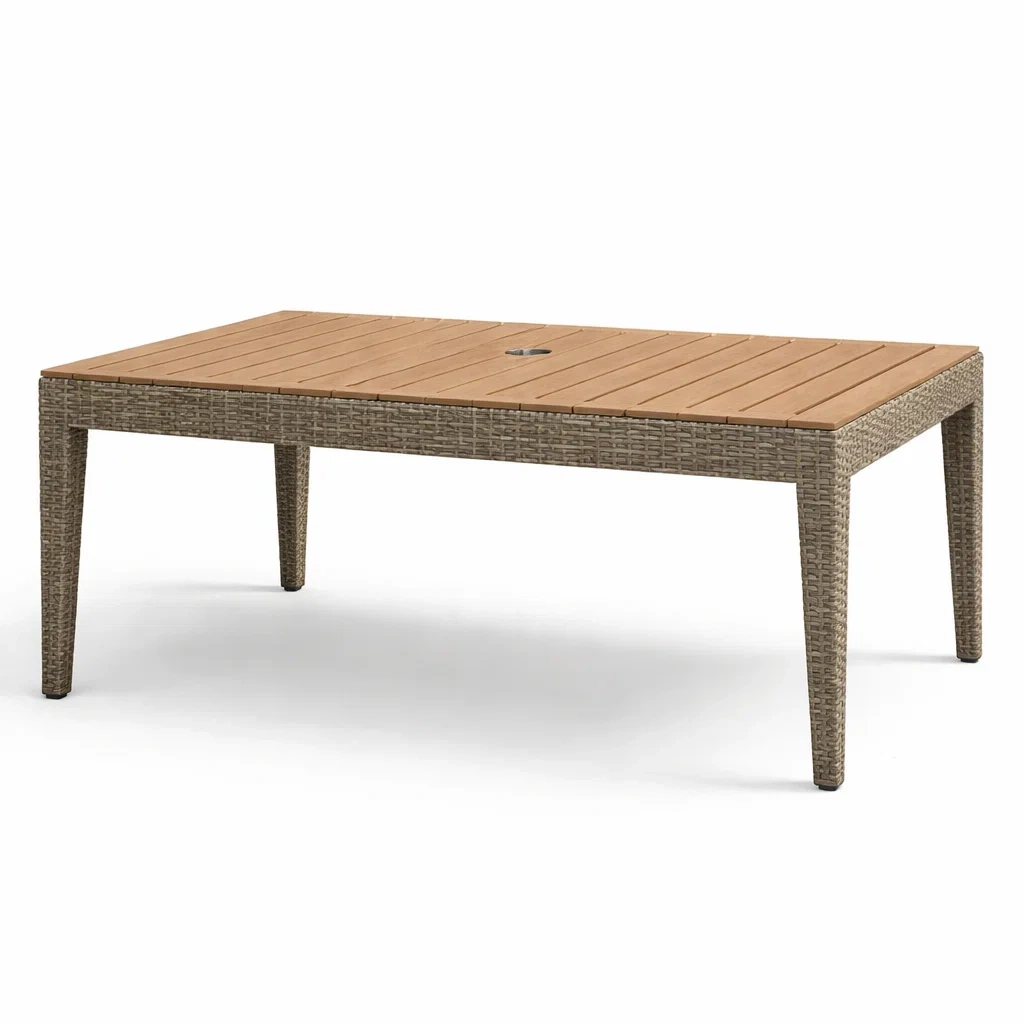 Table de jardin en bois composite et résine tressée